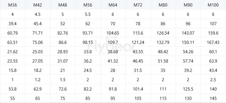 规格尺寸:M5-M48